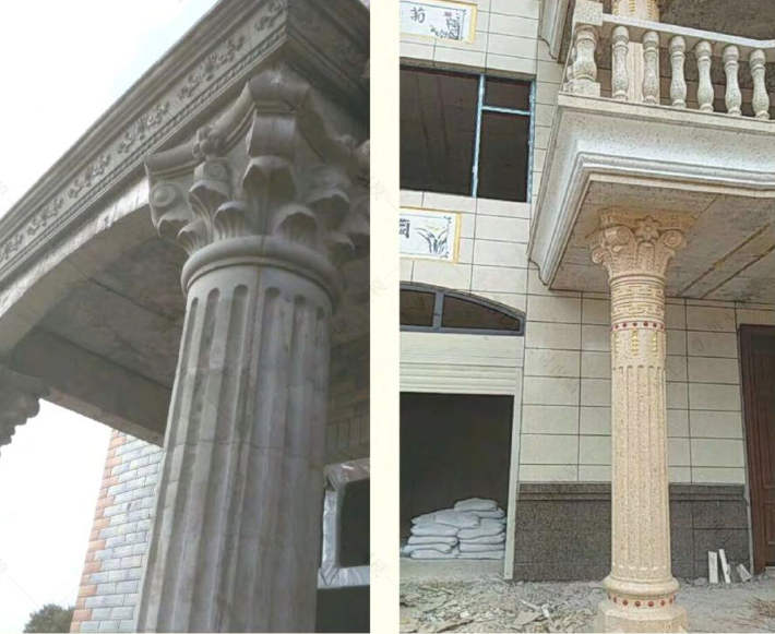 Roman Pillar moulds with size from diameter 200mm, 250mm, 300mm, 350mm, 400mm, 500mm, 600mm the Length can be adjusted. We also have Square Roman Pillar,  Sidewall Pillar, Corner Pillar, and other window mould, roof line mould,